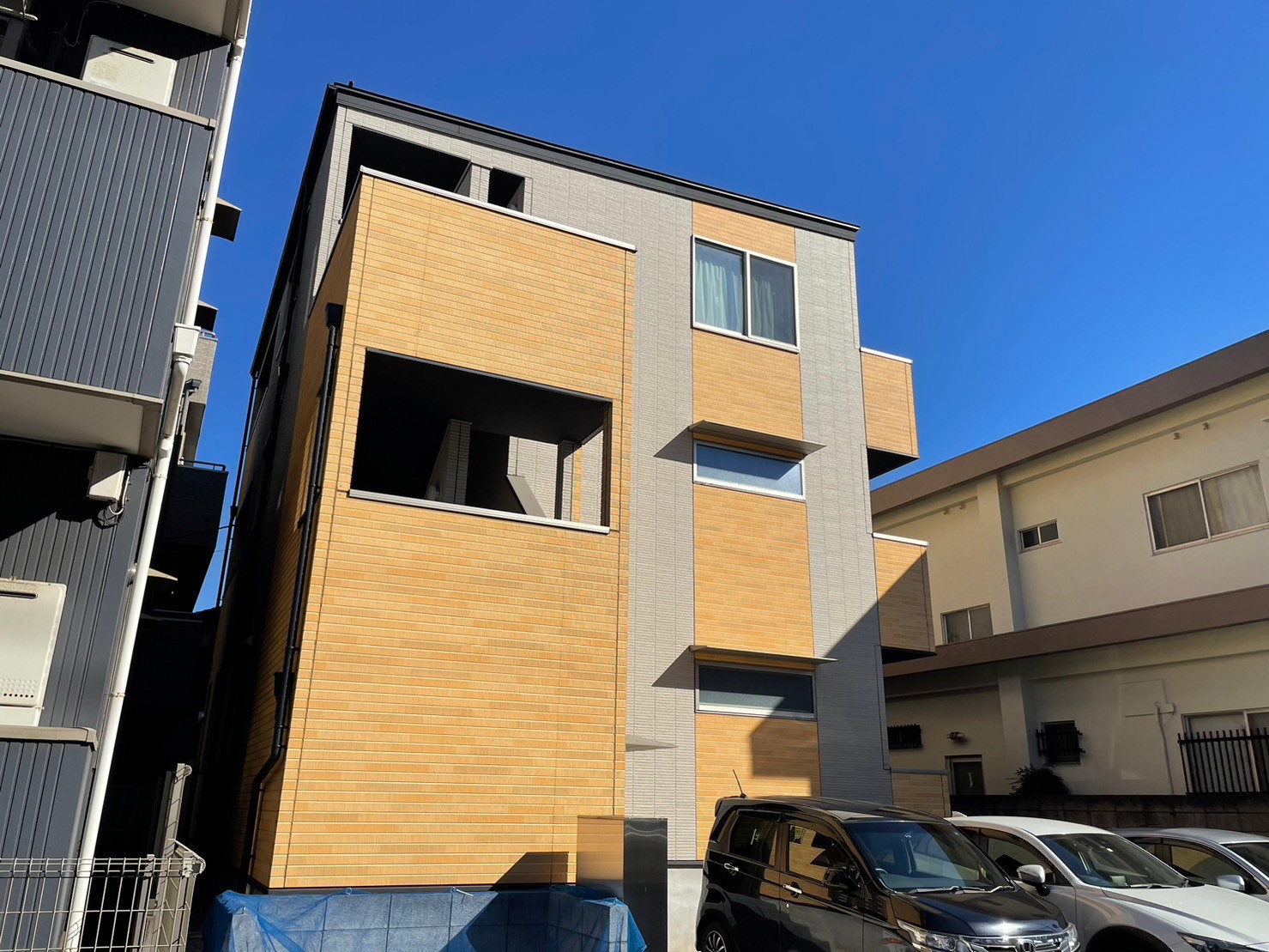 2方向道路に面した土地の形がいびつな立地に、総戸数12戸をプランニング出来た全居室南向きの物件。